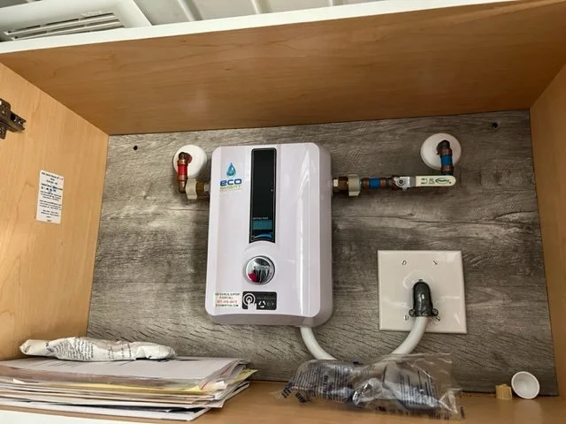 8' x 15' Finished Amazon Shed – complete with a full bath (shower, toilet, vanity) and washer/dryer