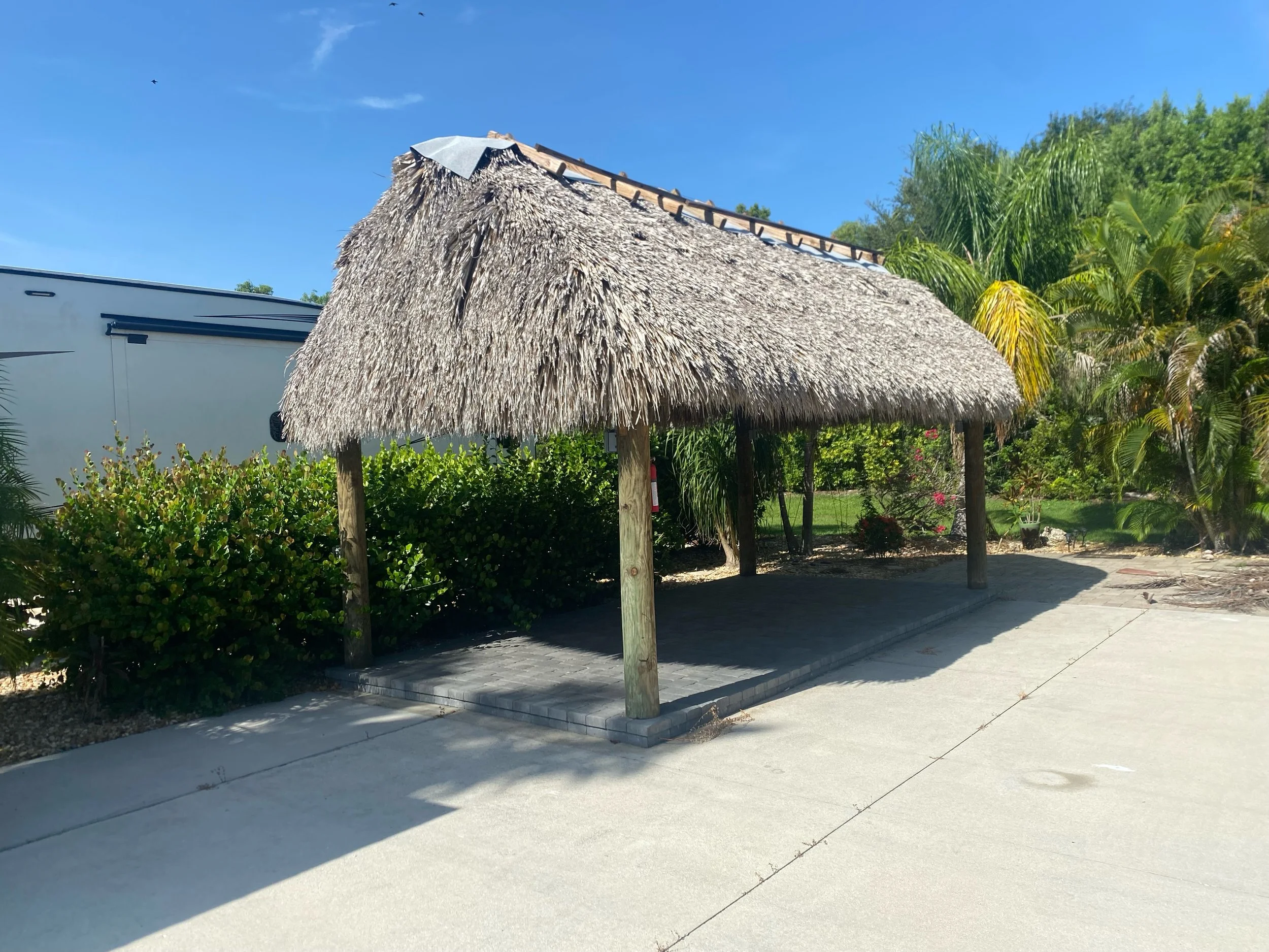 20' x 10' Elevated Tiki Hut – full electrical, ceiling fan, and professionally rethatched March 2025